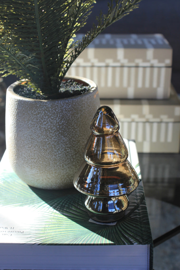 This Embossed Glass Tree comes in 3 unique and stunning styles. Made with a raised design, this tree adds a touch of elegance and sophistication to any room. Perfect for the holiday season or as a year-round decoration. Upgrade your home decor with this beautiful piece.
