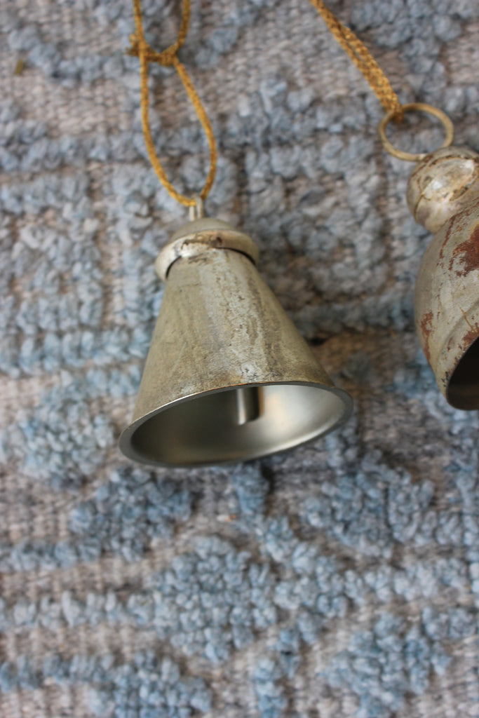 Enhance your holiday or winter decor with our Iron Bells. These metal bells feature a distressed pewter finish, adding a rustic touch to any space. Hang them up and enjoy the soothing sound of the bells as they sway in the breeze. Perfect for adding a festive touch to your home or office.