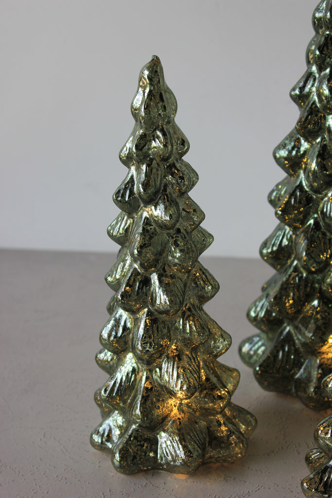 Elevate your holiday decor with our LED Green Glass Tree! The mercury glass material gives a beautiful shine, while the LED light adds a warm and cozy ambiance. Perfect for adding a touch of nature to your home, without the mess of a real tree!