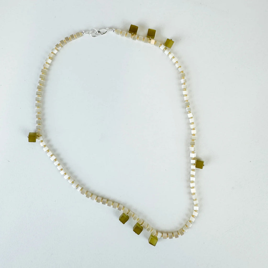 Elevate your jewelry collection with the Klee Necklace from The Millhouse Collection. This elegant piece features sterling silver metal paired with optic glass and alternating Japanese glass seed beads, all beautifully arranged on a soft silk cord. Combining refined materials with expert craftsmanship, it adds a graceful and distinctive charm to any outfit.