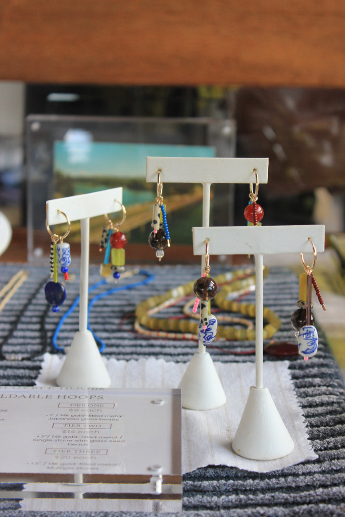 • Tier 2: 0.5"/ 14k gold-filled metal / Single stone of stone with glass seed beads