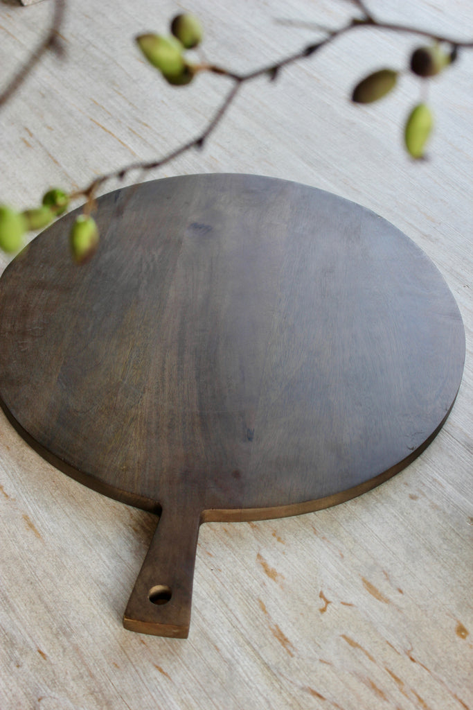 Elevate your kitchen decor with our Mango Wood Cutting Boards! Crafted from sturdy mango wood and finished with rich walnut, these versatile boards are perfect for serving and slicing your favorite cheeses. Its convenient handle adds both style and functionality, making it a must-have for any food lover. In two shapes, round or rectangular.