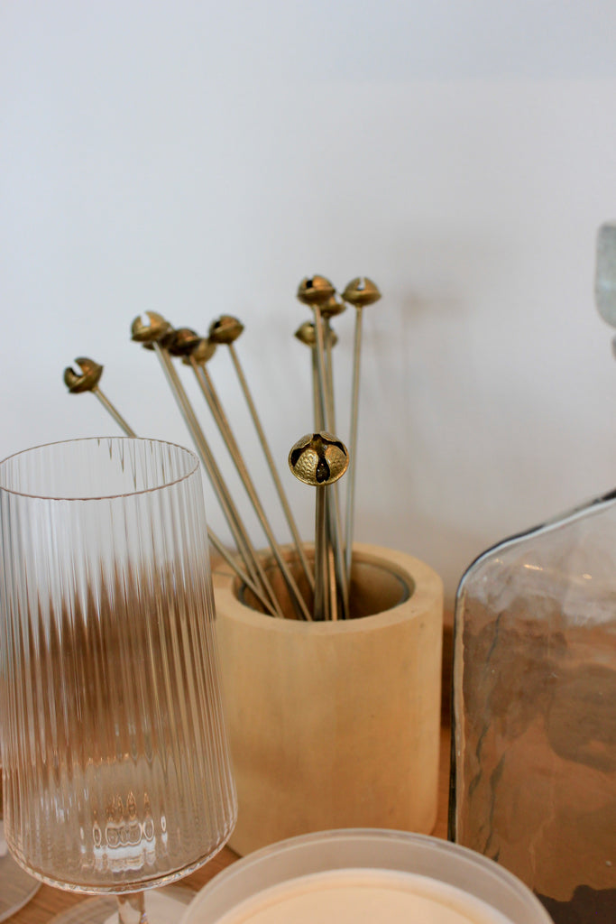 Upgrade your home bar with our Cocktail Stirrer w/ Bell - expertly crafted with a stainless steel and brass design. Elevate your mixology game with precise stirring and add a touch of elegance with the charming bell. Perfect for any cocktail connoisseur.