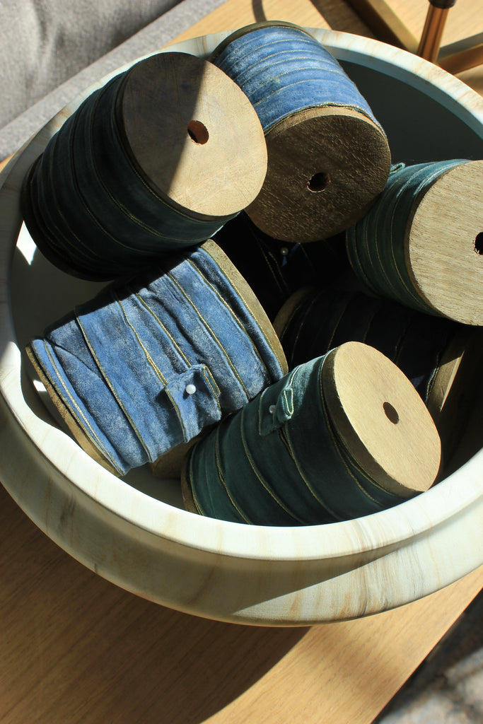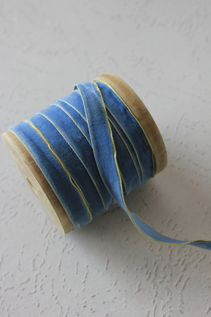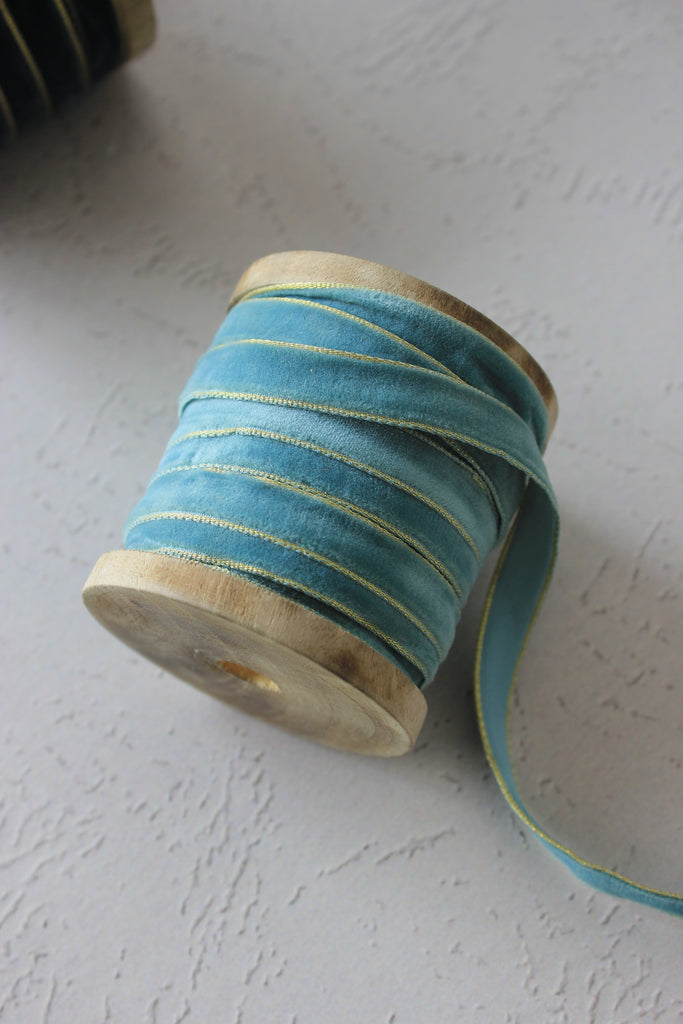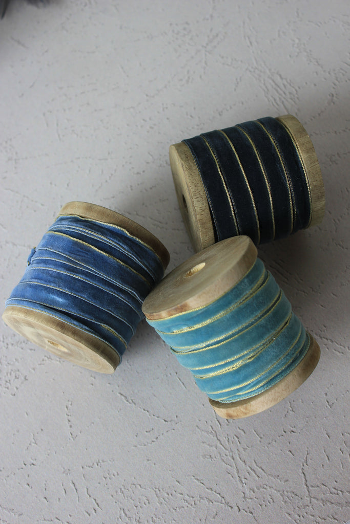 Elevate your craft projects with these luxurious velvet ribbons, featuring three stunning color options—blue, charcoal, and navy. Crafted from high-quality viscose and lurex, each ribbon offers a soft, velvety touch combined with subtle glitter, enhancing both texture and shine. The metallic edges add an elegant sparkle and striking contrast, making your creations truly stand out. Flexible and durable, these ribbons on a convenient wood spool provide versatile styling options with vibrant colors that inspire creativity.