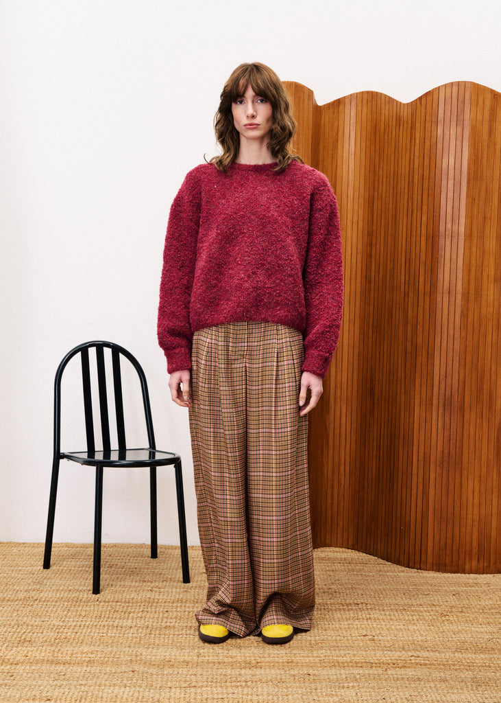 Experience cozy warmth with the Camelia Fuzzy Sweater, crafted from a soft blend of wool and recycled polyester. Its long, slightly balloon sleeves add a touch of style while the straight cut ensures a comfortable fit. Perfect for chilly days, this sweater combines sustainable materials with lasting comfort to keep you warm and stylish all season long.