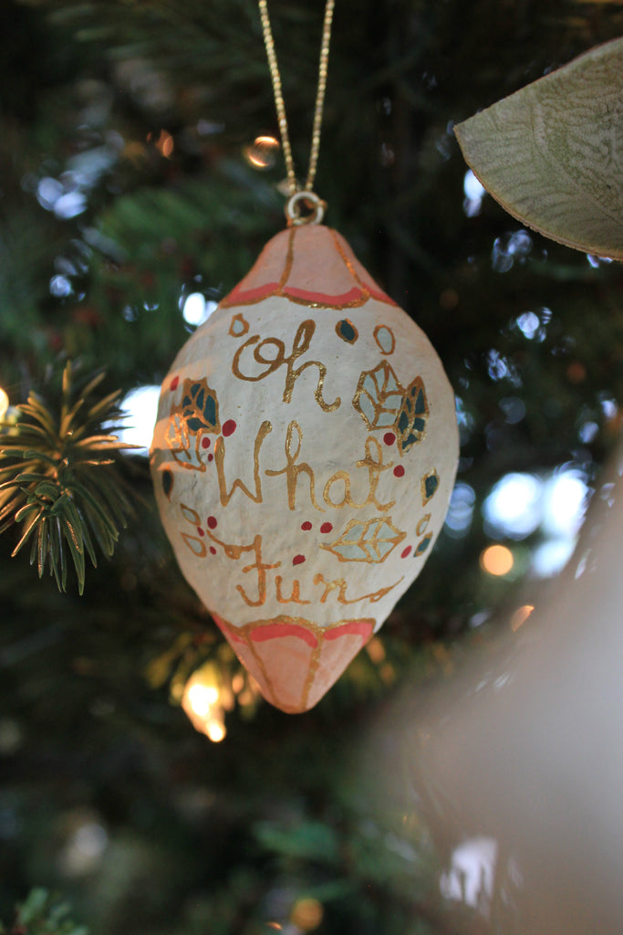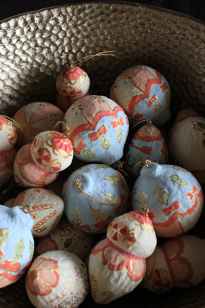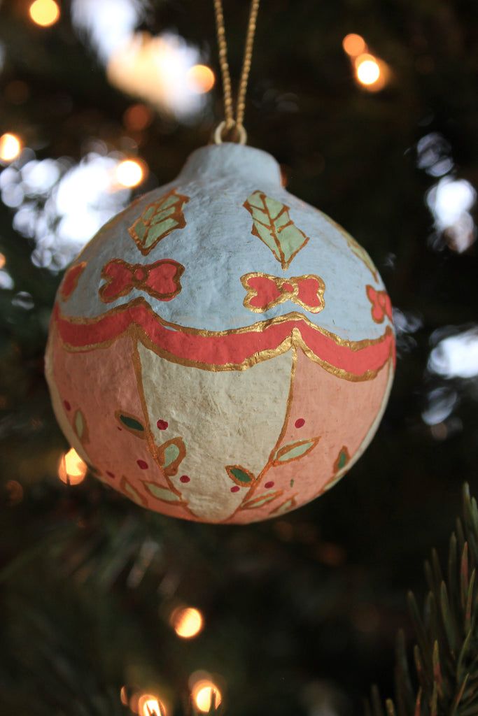 Expertly hand-painted with unique designs, our Paper Mache Painted Ornament adds a touch of color and charm to any holiday decor. Available in four styles, each ornament is carefully crafted and multi-colored, making it a delightful addition to your collection. Bring joy and beauty to your home this season.