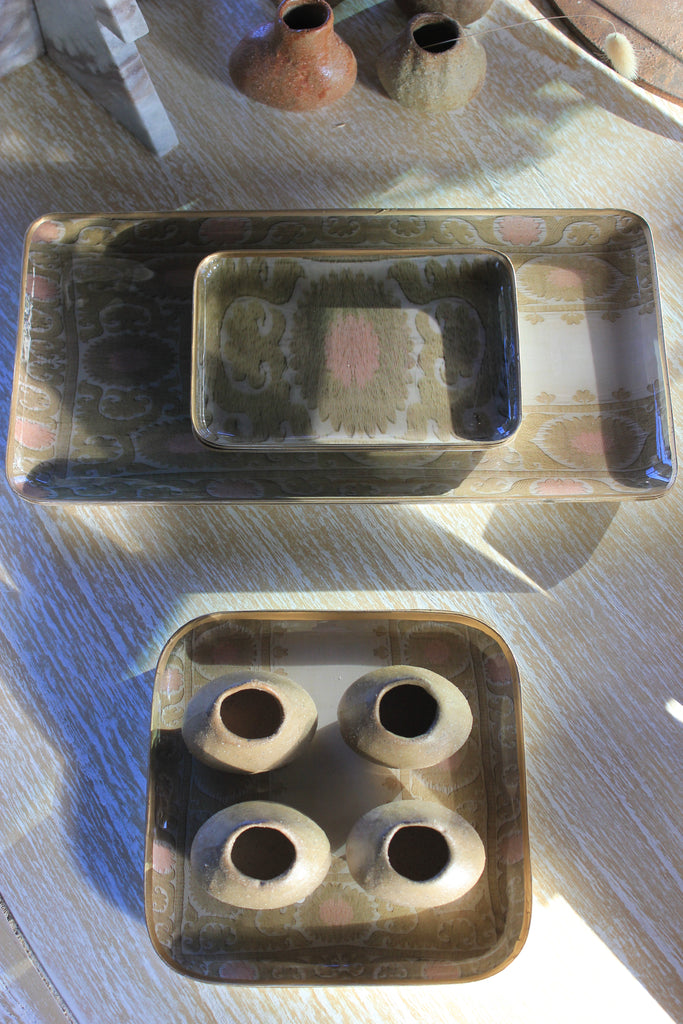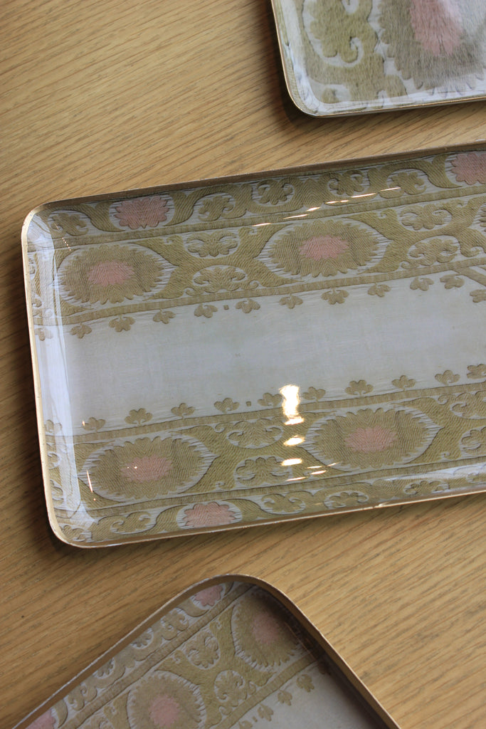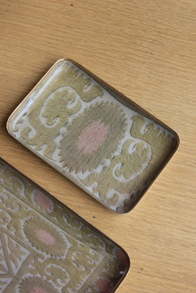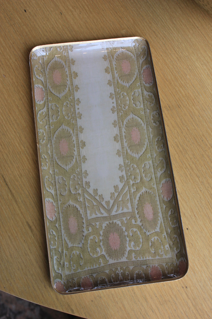 Introduce function and style to your space with the Sunrise Enamel Tray. Organize small essentials with ease, thanks to its Suzani-inspired pattern and sleek rectangular or square shape. Place on entryway tables, desks, or countertops for added practicality and charm. Available in three designs for a touch of personalization.